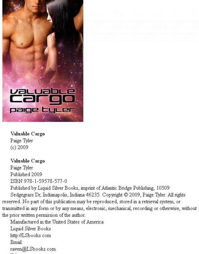 Sedgegrass Dr, Indianapolis, Indiana 46235. Copyright © 2009, Paige Tyler. All rights reserved. No part of this publication may be reproduced, stored in a retrieval system, or transmitted in any form or by any means, electronic, mechanical, recording or otherwise, without the prior written permission of the author.